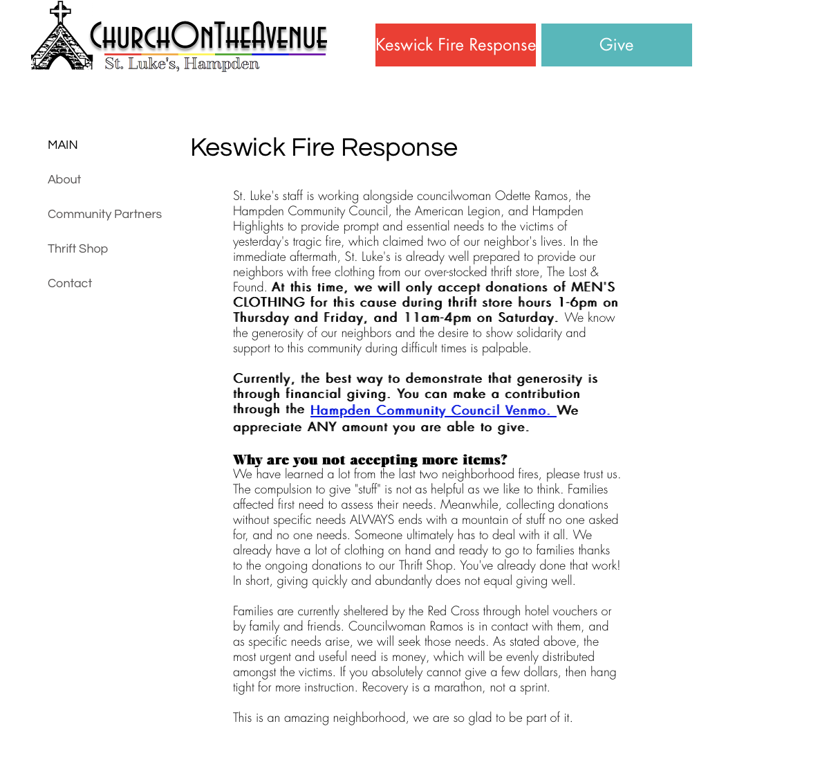 The Baltimore City Fire Department could not yet provide us with a total number of displaced residents. Pastor Jim Muratore at St. Luke's Church on the Avenue confirms everyone is either staying with family or friends, or at a hotel through the Red Cross. The church is one of several community organizations collecting donations. The pastor asks for either monetary donations, or men's clothing, as they say they already have plenty of clothes in their Thrift Shop.