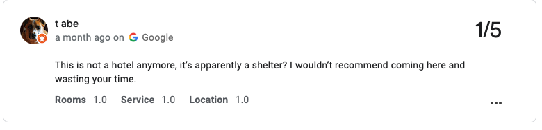 That's evident from the reviews left for the property online, people warning other customers not to book here, it's closed.