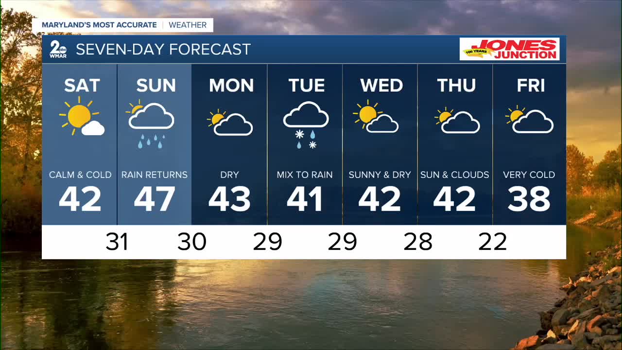 Monday will be a dry day before our next storm moves in Tuesday. It's likely that western Maryland will see a mix bag of rain, snow, sleet, and freezing rain! Areas in the WMAR 2 viewing area will likely see a quick burst of some wet snowflakes mixing in with rain Tuesday morning, followed by a quick transition to all rain as temps rise above freezing.