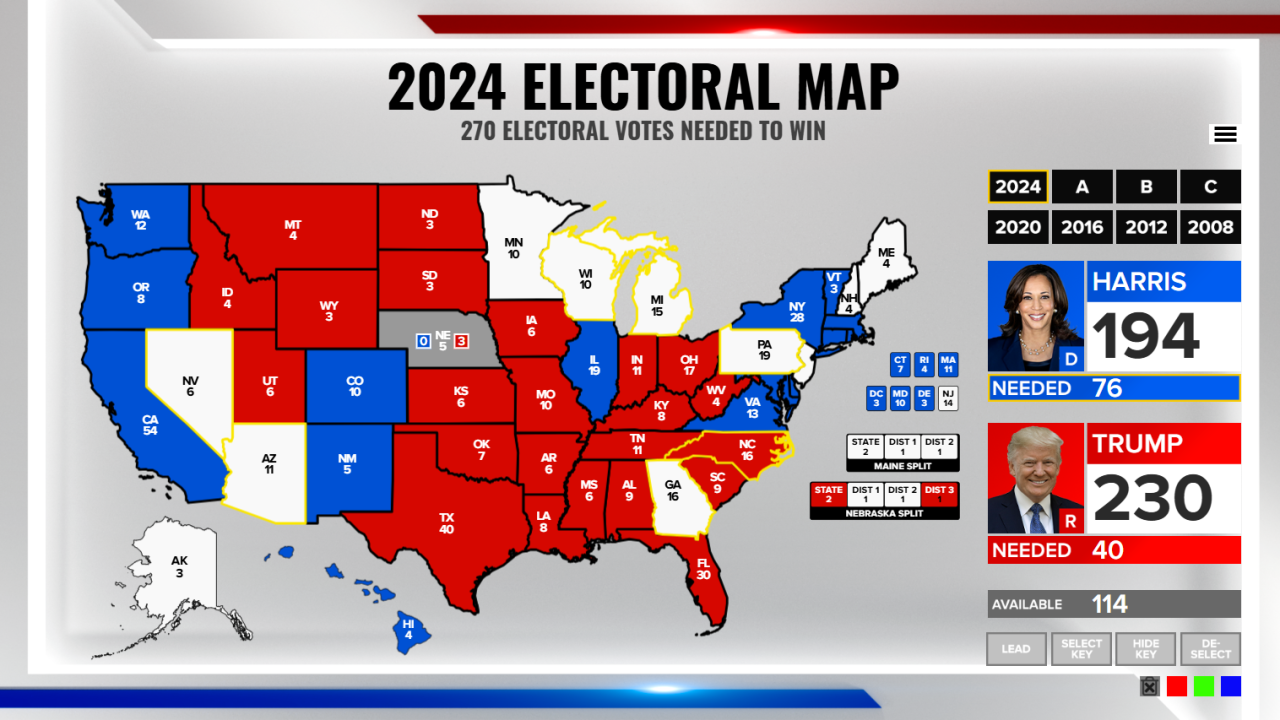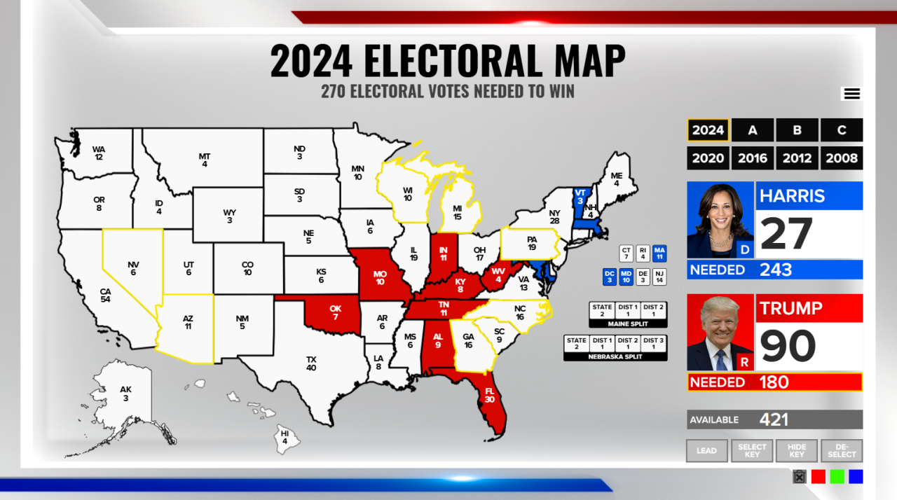 - Presidential Electoral Race: Harris 165 - Trump 214