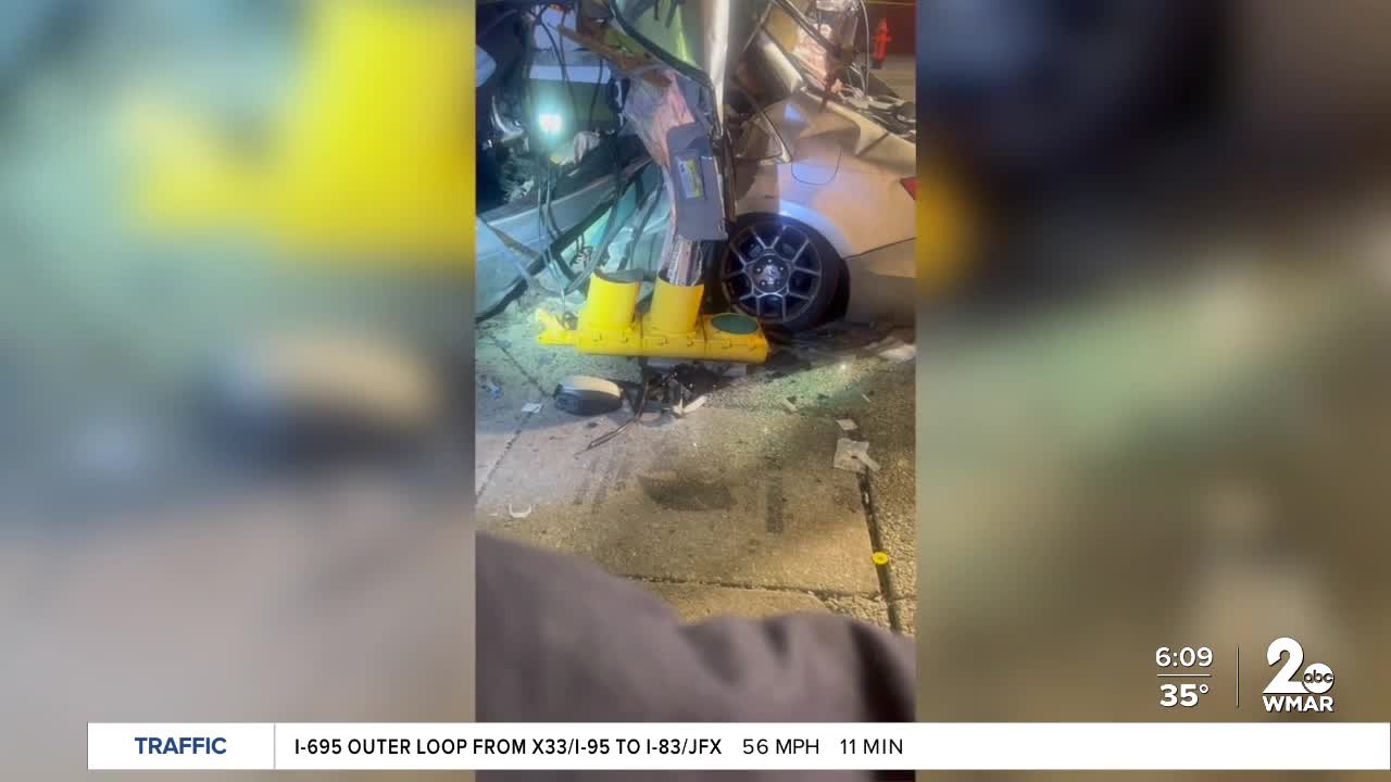 BALTIMORE — Eight people were rushed to the hospital early Thursday morning, after two cars and a MTA bus collided in Baltimore.