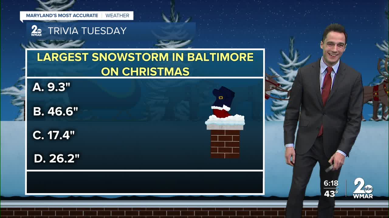 What was Baltimore’s largest snowstorm to fall on Christmas Day?