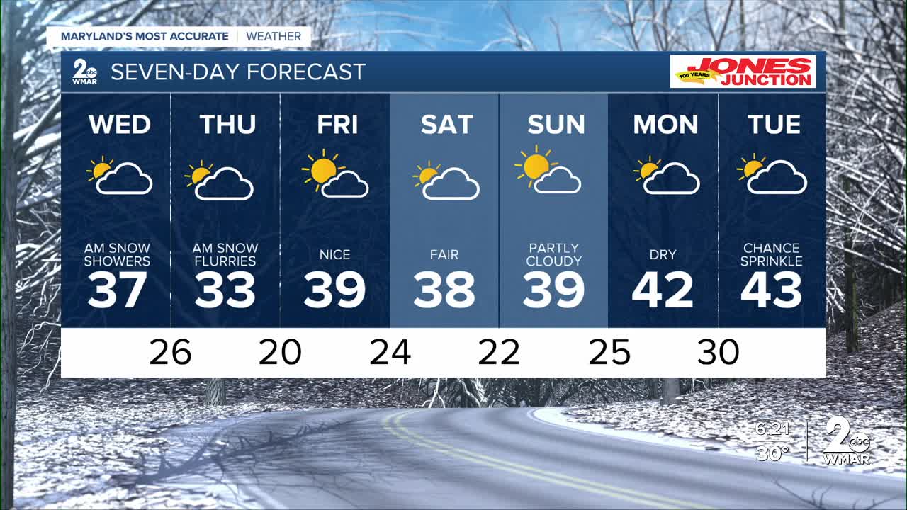 Another weak front slides through Wednesday night, but much like tonight, limited moisture means only a few snow flurries are possible.