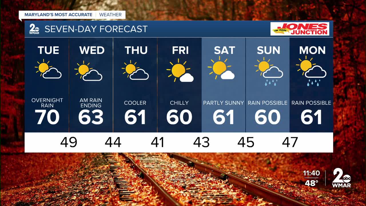 Looking ahead to the weekend: Saturday is trending dry with a few showers arriving during the Sunday to Monday time frame.