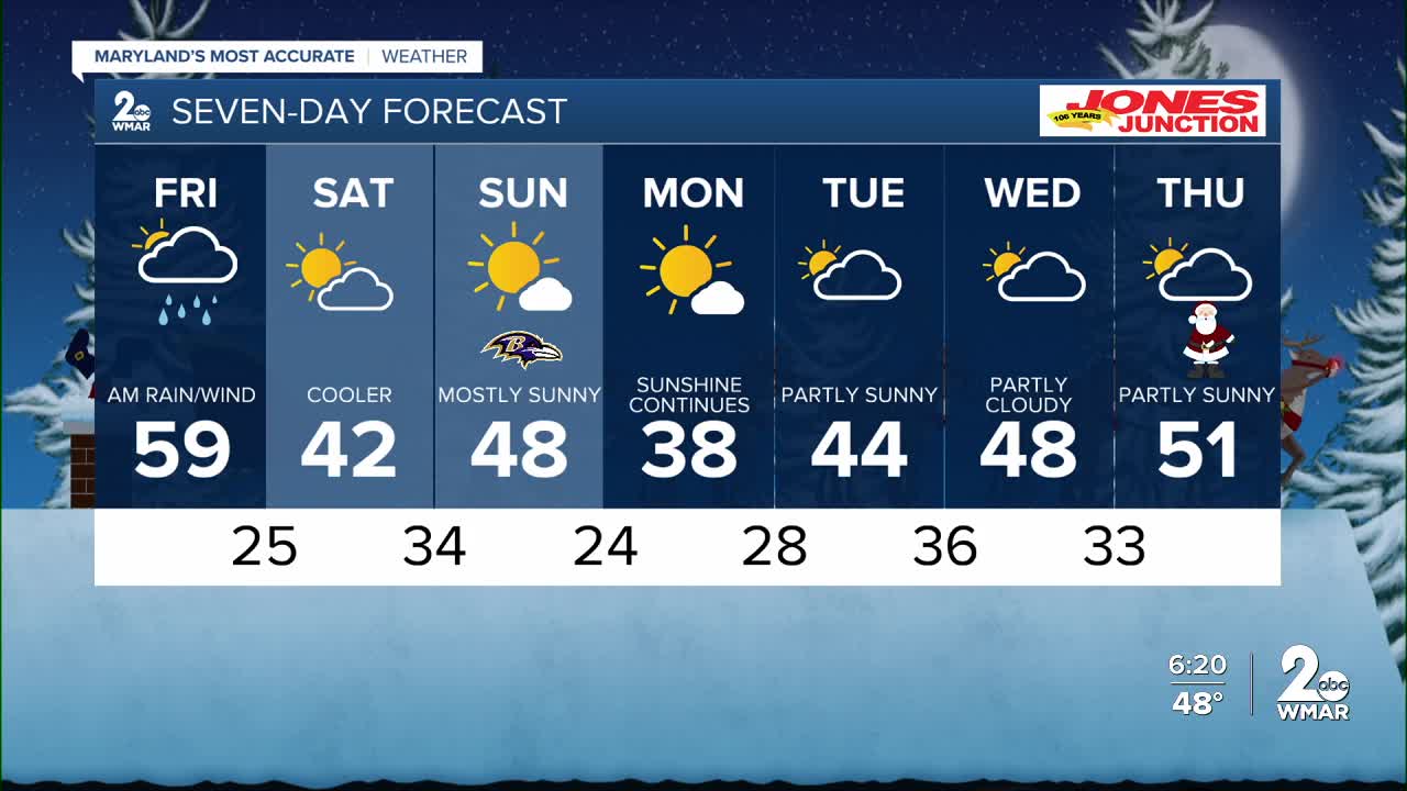 BALTIMORE — Happy Friday! Expect periods of heavy rain and strong gusty winds to start the day. Wind Advisories are in effect through 7 PM, with wind gusts potentially rising to 50-55 mph. That means we could see downed trees and even a few isolated power outages. There’s also a chance that a few storms could turn severe between midnight and sunrise, so it’s a good idea to have a way to receive weather alerts. Most of the rain should move out around daybreak. However, a few leftover showers are possible through the early afternoon hours. Temperatures will be falling throughout the day. Temperatures should drop into the 30s as the kids head home from school. The weekend will be dry and breezy with highs in the 40s and 50s.