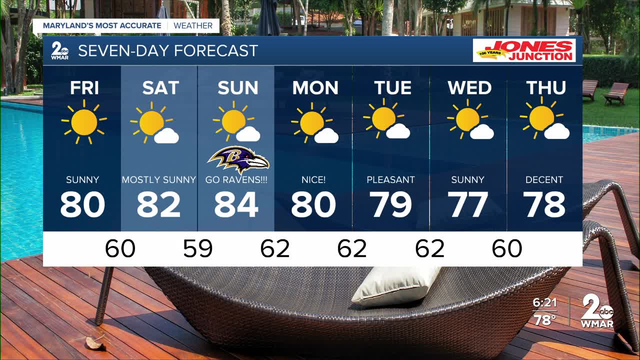The weather looks great for the Baltimore Ravens game at 1:00pm at M&T Bank Stadium!