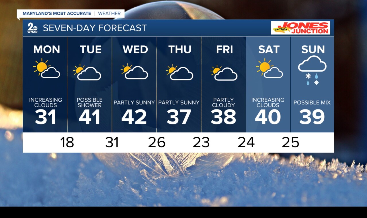 It looks like we’re officially past the coldest stretch of winter. Both short- and long-range models are pointing toward more seasonable temperatures heading forward. Sunshine kicks off the day Monday, with clouds gradually increasing through the afternoon. It’ll also be milder and less windy.
