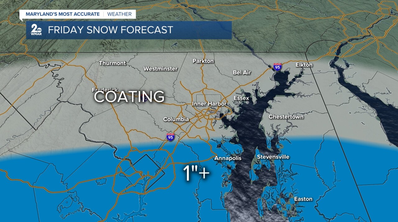 A Winter Weather Advisory has been issued for central and southern Maryland from 4 AM to 4 PM Friday. Confidence is high that these areas will see their first accumulating snowfall of the season. However, there is still uncertainty regarding how far north the snowfall will extend.