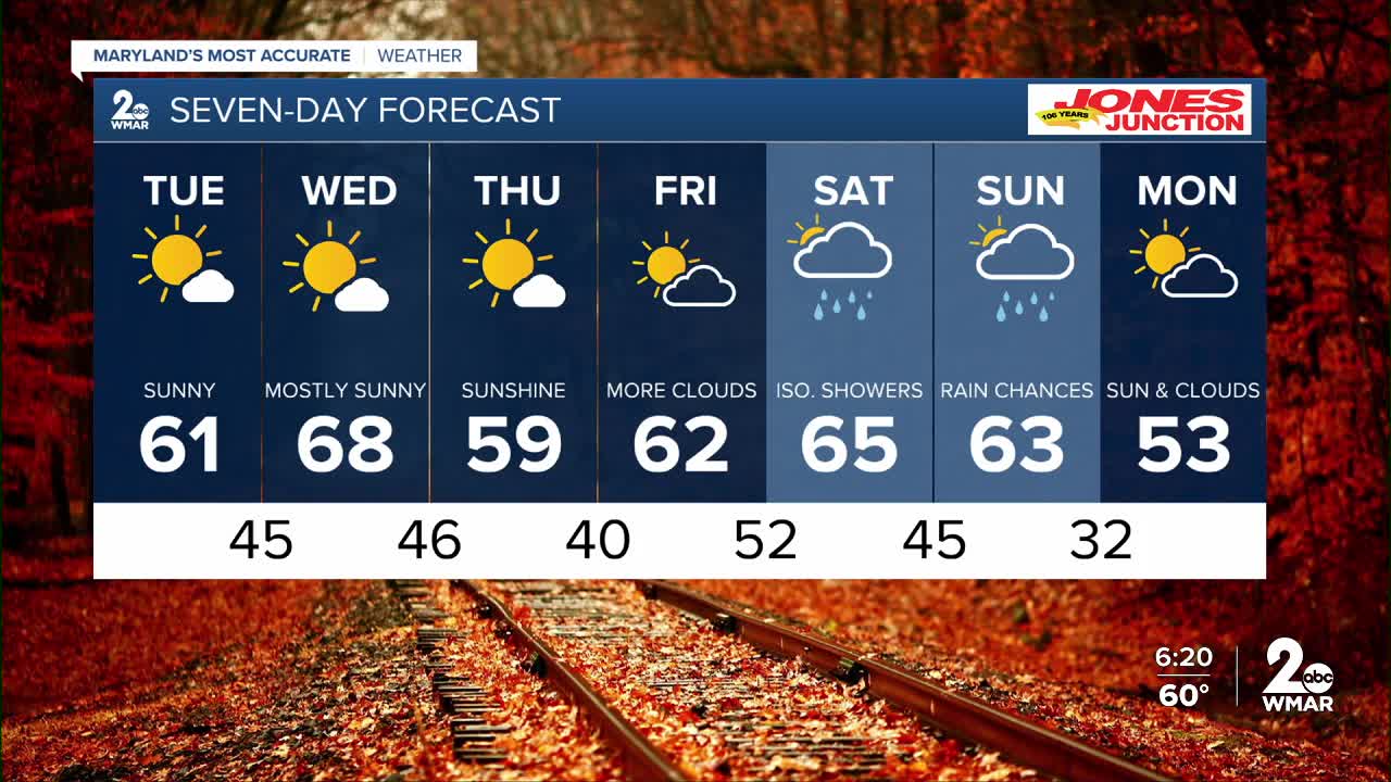 BALTIMORE — Good Monday night! The sunshine will stick with us for most of this week, along with a significant jump in the temperatures! It'll warm to the low 60s Tuesday, and eventually near 70° by Wednesday.