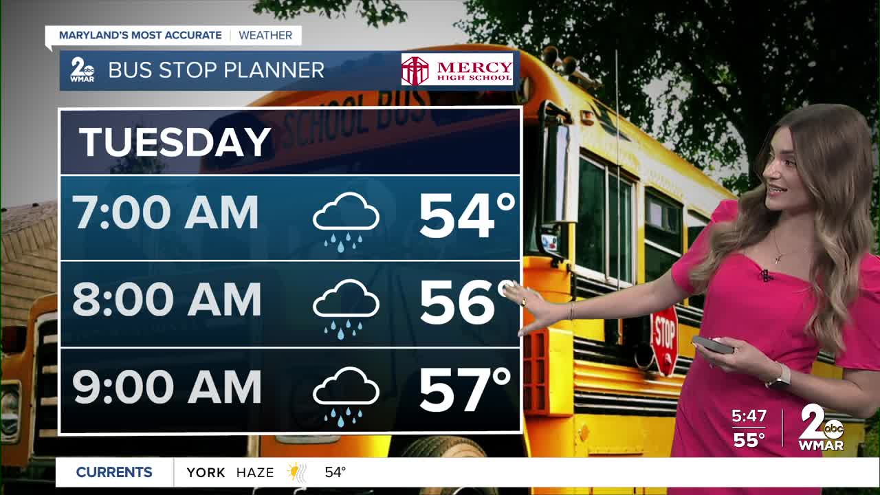BALTIMORE — Happy Tuesday! Morning drizzle gives way to a drier afternoon, with seasonal highs in the upper-60s. Clouds linger throughout the day before gradual clearing occurs on Wednesday. Temperatures cool down late-week, with highs slightly below normal, in the mid-60s on Thursday and Friday. Readings return to the low to mid-70s this weekend with mostly dry skies! Shower chances increase Sunday evening into Monday.