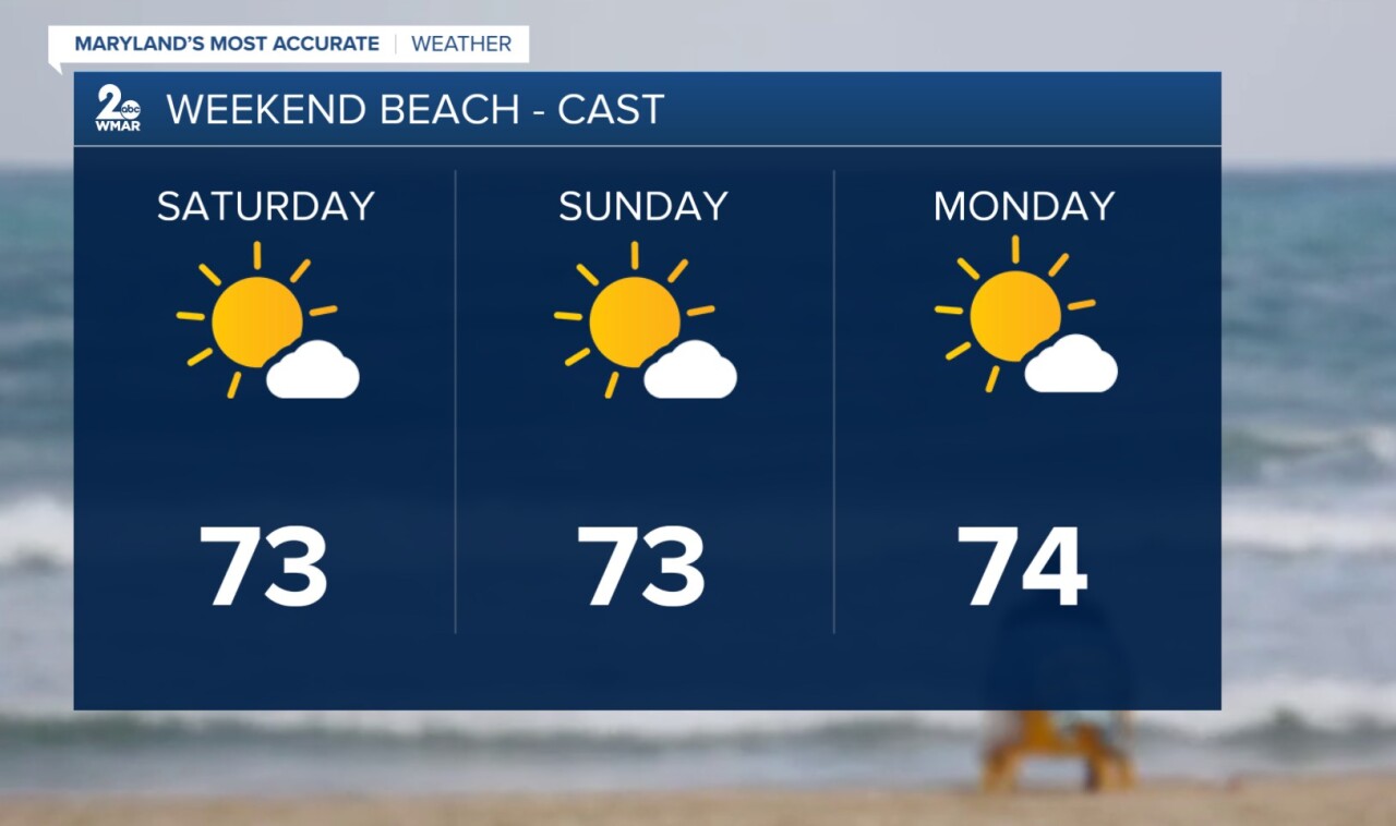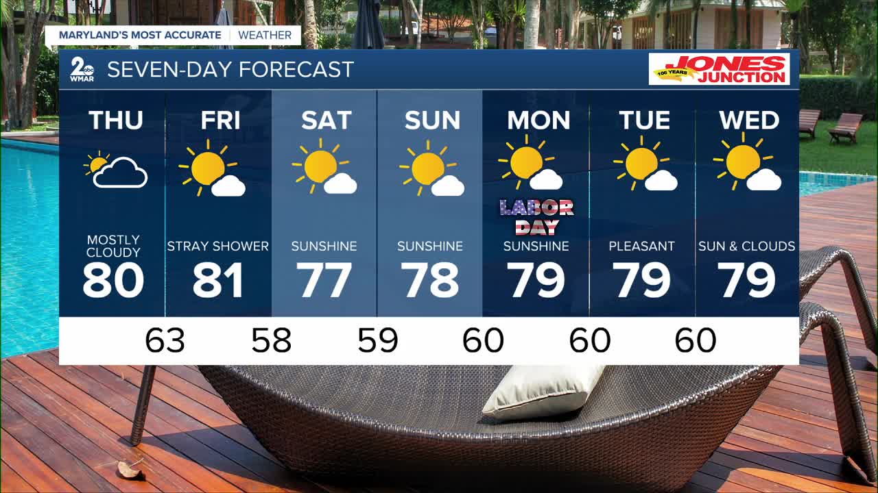 Labor Day looks great! In fact, the whole three day weekend will be dry. If you are heading to the beaches along the Delmarva, it'll be 5-8° cooler this weekend.