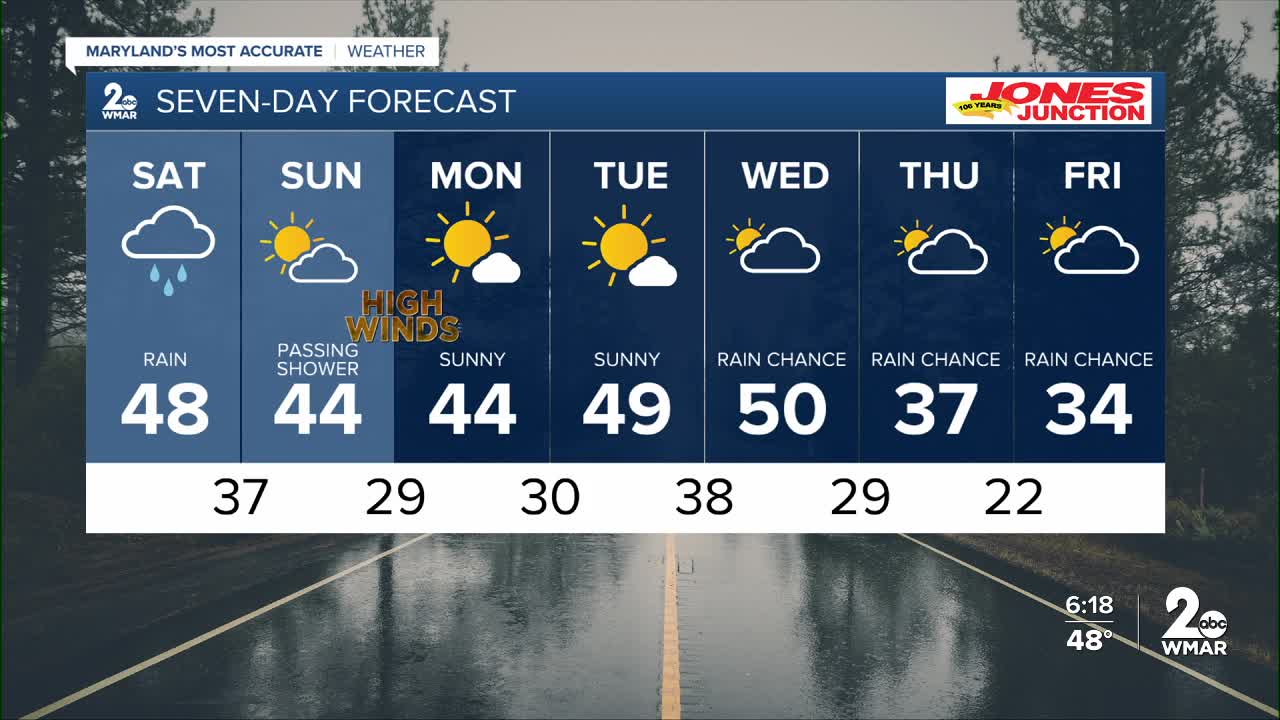 By Sunday, the rain moves out, but the trade-off will be strong, gusty winds. Occasional gusts could reach up to 40 mph from Sunday evening into early Monday.