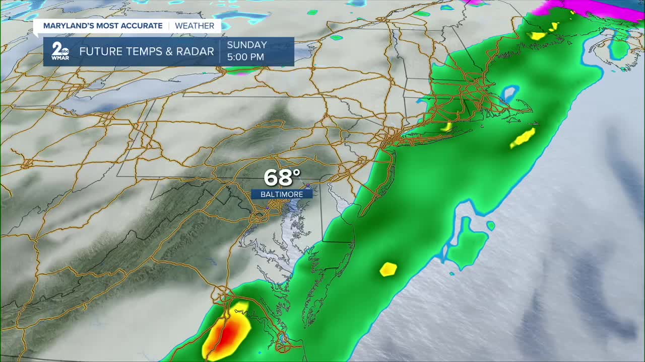 A soggy start to the day with temperatures mild and in the 60s. Rain will linger throughout the morning hours. Dry skies will finally arrive in the evening hours and carry us to Monday. A cold front sliding through the region Sunday will lead to cooler temperatures for the start of next week. Cold and a bit blustery for Monday, with the 50s sticking around for afternoon highs.