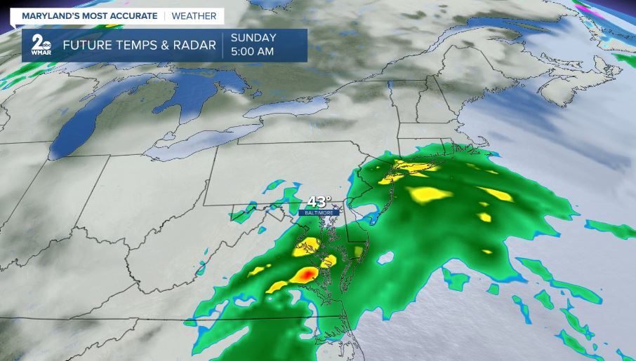 Sunday A chance of showers. Mostly cloudy, with a high near 55. Northeast wind around 15 mph, with gusts as high as 24 mph. Chance of precipitation is 50%.