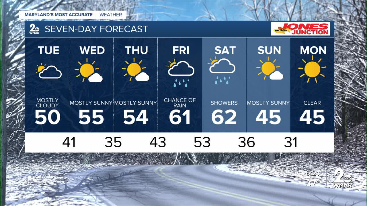 Tuesday will be mostly overcast and chilly, though we should catch a few peeks of sunshine late in the day.