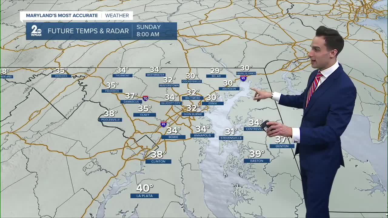 Overnight, a few snowflakes may mix in—mainly across northern parts of the state—but little to no accumulation is expected.
