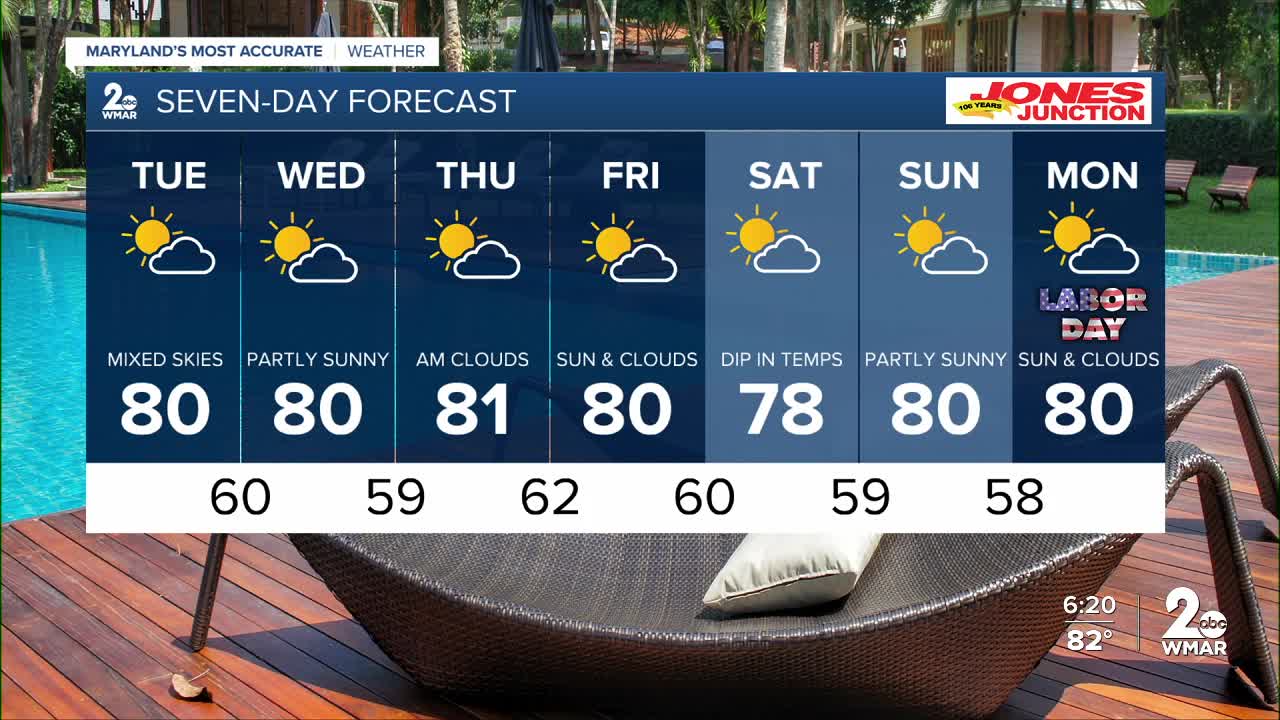 Tuesday Partly cloudy, with a high near 82.