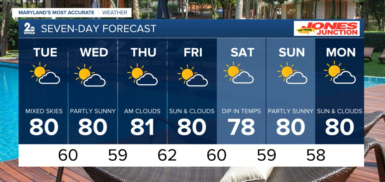 Wednesday Partly cloudy, with a high near 80.