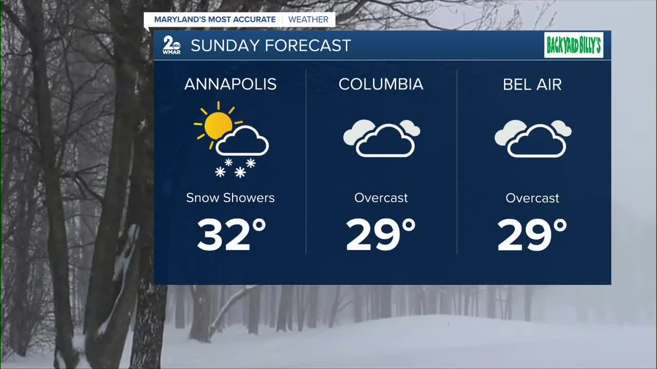 Flurries are slowing this morning as we see this system start to move on from Maryland. Accumulation from overnight and this morning is expected to stick around. Temperatures will be brutal today and tomorrow, with the 30s expected for highs and winds gusting. Overnight, we will see dry, blustery conditions continue with winds holding strong. The teens are expected, with wind chills making them feel less than, rolling into Monday. We will see a gradual warm-up heading past Monday.
