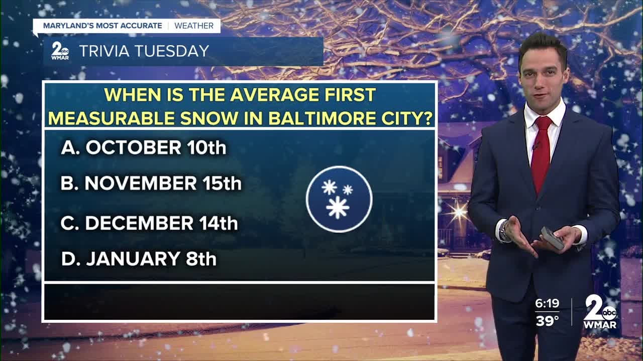 Here is today's question: When is the average first measurable snow in Baltimore City?