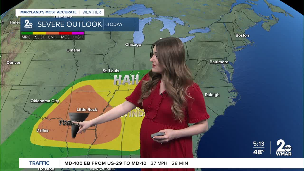 Wednesday's weather will be a bit wild! The Storm Prediction Center has placed the area under a Marginal Risk (level 1/5) for isolated severe storms on Wednesday. A potent storm system will bring the threat for widespread soaking rain, strong wind gusts, large hail, and perhaps an isolated tornado.