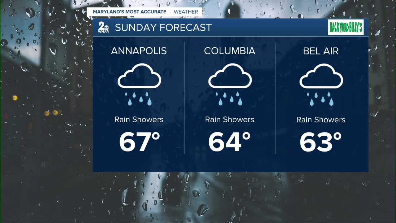 A bit wet out there as rain continues to push through. Mild temperatures to start off the morning, which works in our favor since we will not get much more warmth throughout the next several hours. High temperatures will vary with locations, but the majority of Maryland will see the lower to middle 60s. Winds will be gusty throughout the day, with the highest on the eastern shore. Rain will linger into Monday as the coastal low begins to push out of our region. Temperatures are expected to cool by the end of the workweek. Keep safe this holiday weekend!